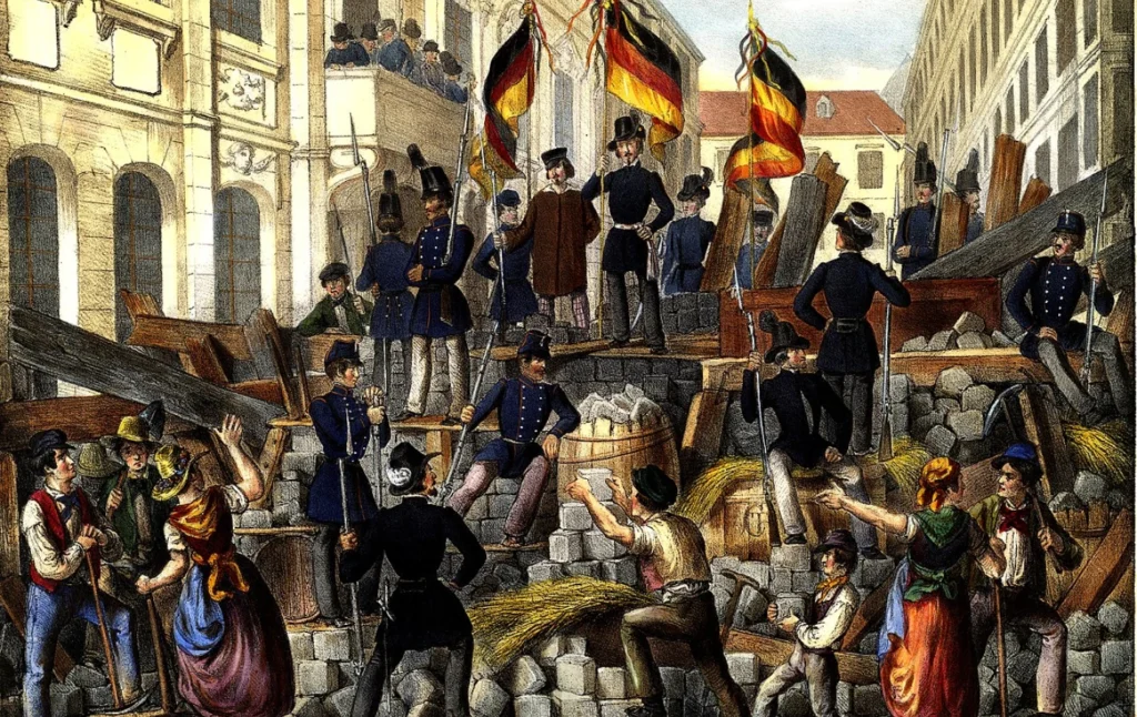 Die Revolution von 1848 führt zu einem gemeinsamen Auftreten von Arbeitern, Studenten und auch Gymnasiasten gegen den autoritären Staat.